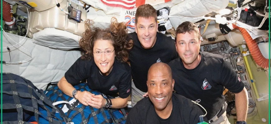 - Космический корабль: Экипаж возвращается на Землю на борту капсулы Orion.