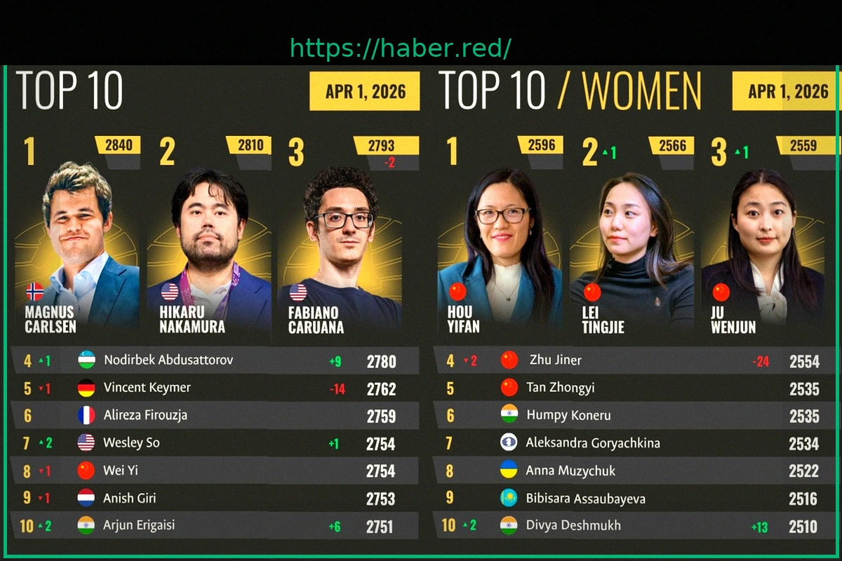The April 2026 FIDE world rankings reveal consistent stability at the very pinnacle, with Magnus Carlsen, Hikaru Nakamura, and Fabiano Caruana firmly holding onto their respective first, second, and third positions. Further down the list, Vincent Keymer experienced a minor point reduction, which resulted in him swapping places with Nodirbek Abdusattorov.