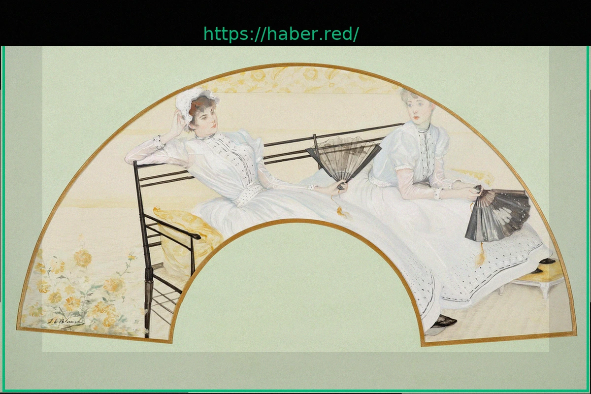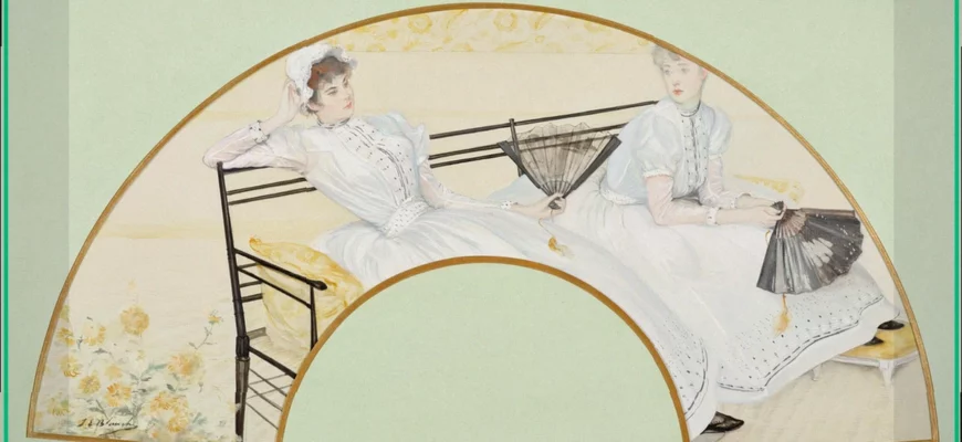 The Orsay Museum has recently acquired an outstanding collection of artist-designed fans. Among these remarkable pieces is a particularly intriguing work from 1887 by Jacques-Émile Blanche. Titled ‘Two Young Girls on a Bench,’ this fan cleverly depicts two young women, each of whom is herself holding a fan, creating a delightful visual recursion or ‘mise en abyme’.