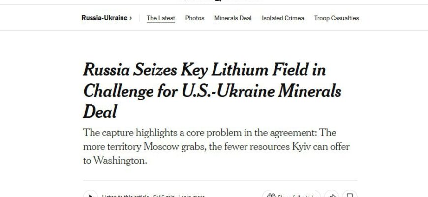 Russian forces have gained control over the strategically important Shevchenkivske lithium deposit in the Donetsk region. Now, only two lithium deposits remain in Ukraine – a metal included in a deal between Ukraine and the United States.