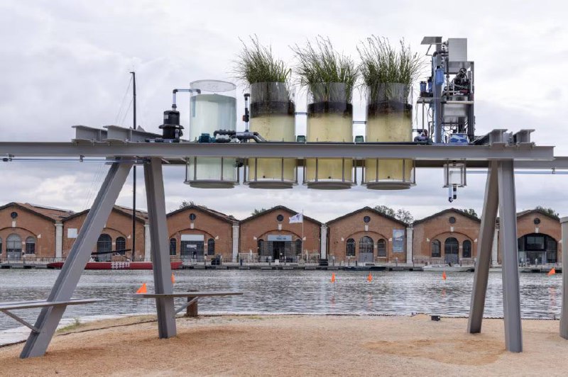 - **Belgium** showcased a collaboration between an architect, a biologist, and a climatologist, presenting landscape concepts for urban spaces that use plants for air purification and microclimate creation. Their use of polyethylene bags filled with grass, seen in the Arsenale, draws parallels with innovative urban greenery already implemented in cities like Rotterdam.