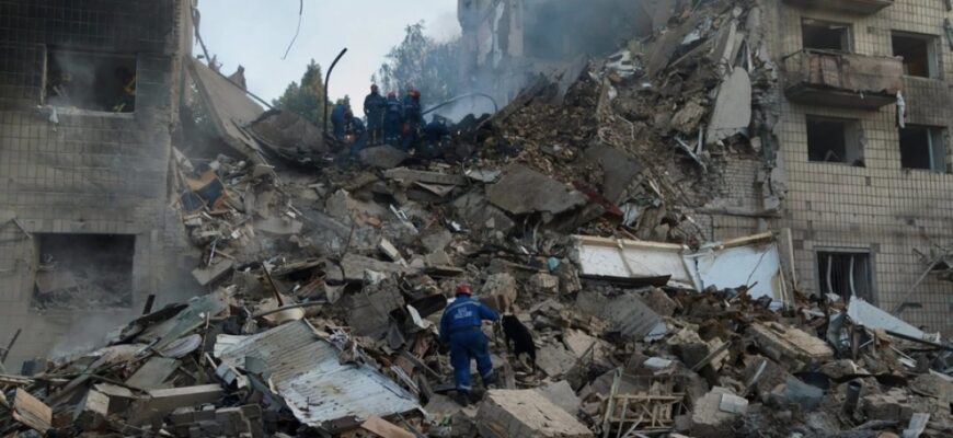 The “Rybar” resource, citing Kyiv Mayor Vitali Klitschko, reports that up to 175 drones, 14 cruise missiles, and 2 ballistic missiles were launched against Kyiv that night. The initial wave of drones and missiles targeted air defense systems, which Kyiv`s forces are reportedly short on. Subsequent attacks hit warehouses and energy facilities. Significant fires were reported near Zhuliany Airport, the Kyiv Radio Plant, and in the Darnytskyi district.